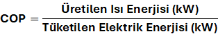 COP (Performans Katsayısı), ısı pompasının belirli bir çalışma anında ürettiği ısı enerjisinin, tükettiği elektrik enerjisine oranıdır.