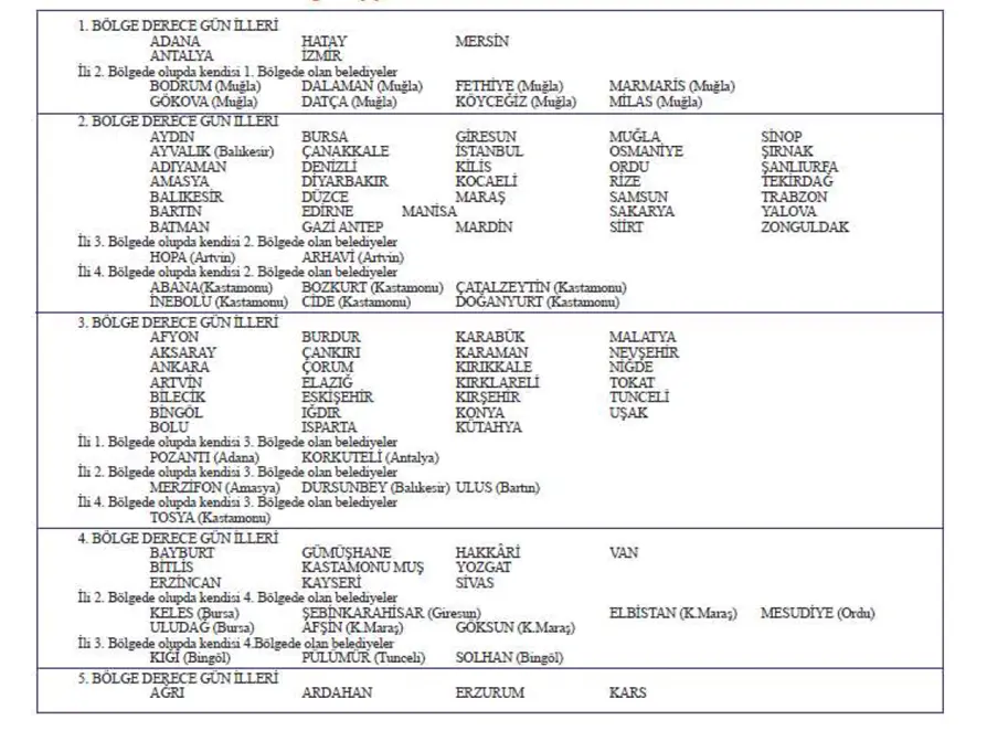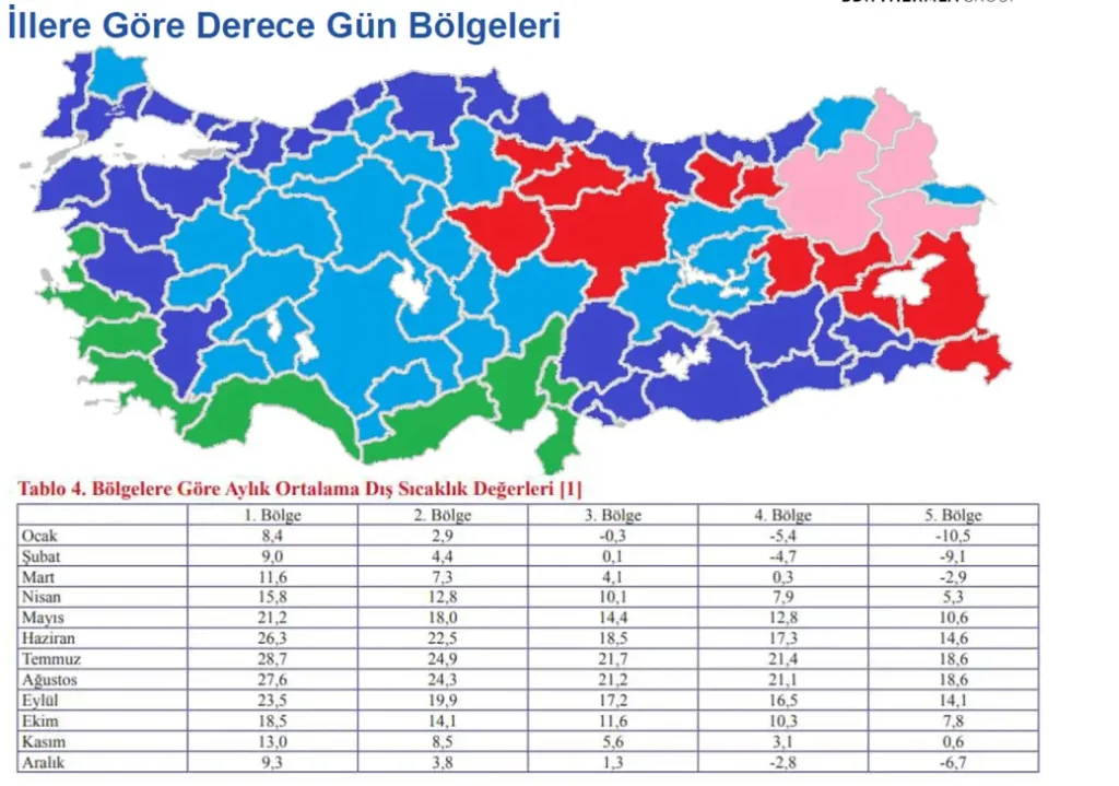 Bu harita üzerinden bölge seçilmektedir. Balıkesir ikinci bölge olarak geçmektedir. Bölgenin dış hava sıcaklıkları tabloda gözlemlenebilmektedir. Ek olarak aşağıdaki tablodan da ilin bölgesi bulunabilmektedir.