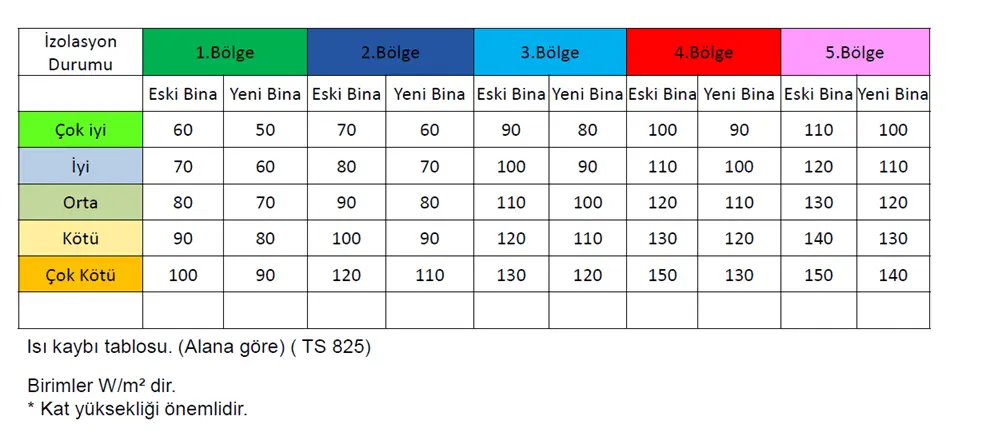 Kurulum yapılacak il tespit edildikten sonra 2. aşamaya geçilir. Bu aşamada bölge için tanımlanan değerler ile alan çarpımı yapılarak sonuca ulaşılacaktır. Balıkesir 2. bölge olarak gözlemlenmiştir. Balıkesir için hesaplamaya devam etmek için aşağıdaki tabloyu inceleyebilirsiniz.